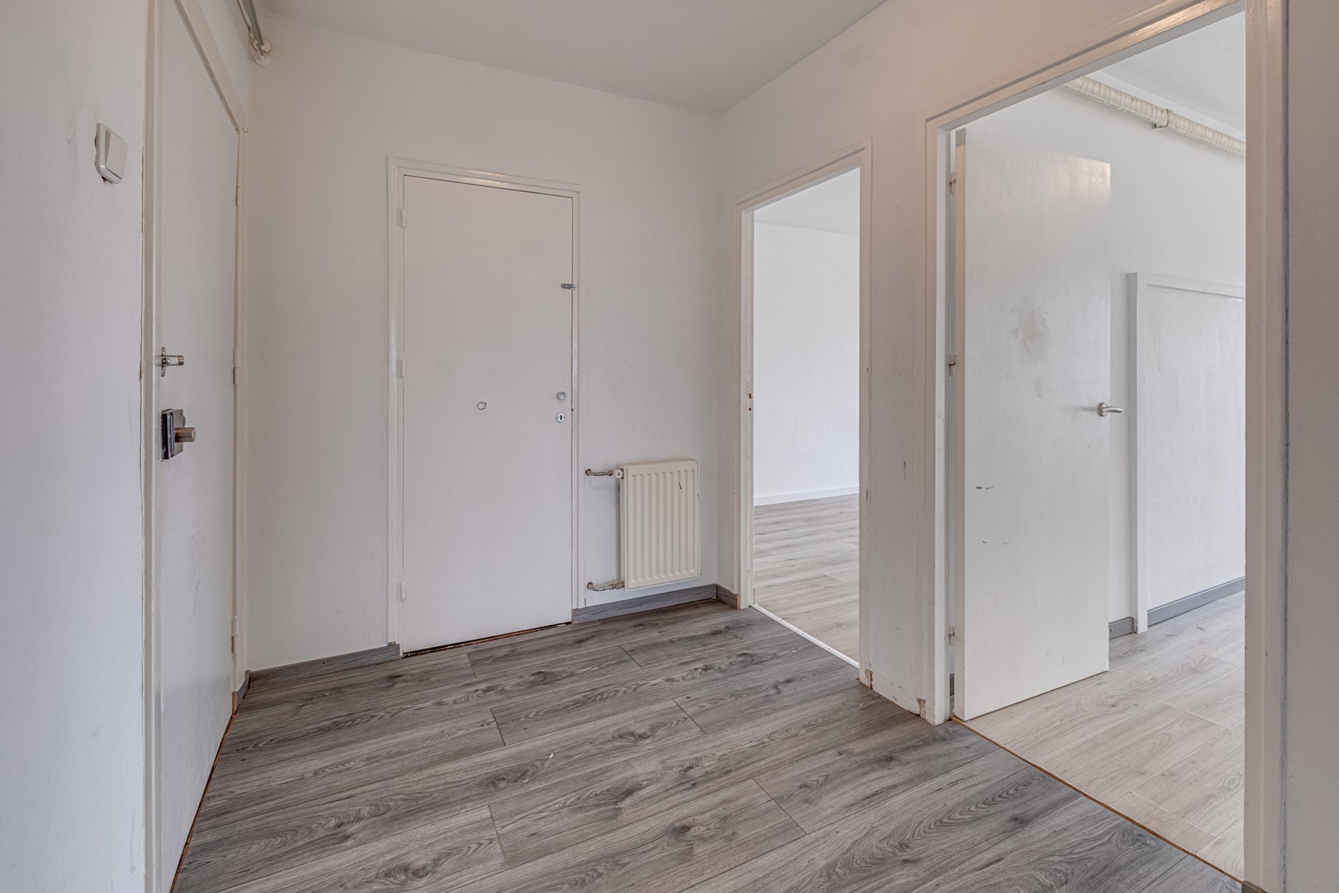 Je komt het appartement binnen in de ruime hal die toegang geeft aan alle andere vertrekken. Naast de meterkast bevindt zich de eerste ruime slaapkamer met muurkast en een deur naar het balkon. De tweede slaapkamer is iets minder groot, maar nog altijd ruim voor een éénpersoons slaapkamer. Het gehele appartement, met uitzondering van keuken, toilet en badkamer, is voorzien van een laminaatvloer. Alle ruimten zijn uitgerust met houten kozijnen met dubbelglas (Top Argon 2024).