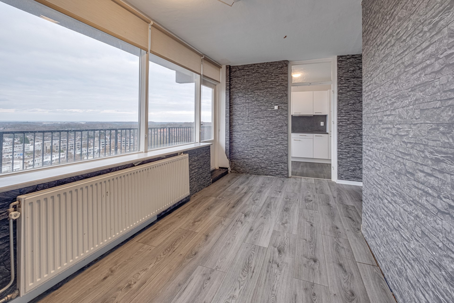 “A room with a view” zo zou je dit appartement op tiende verdieping met aan twee kanten panoramisch uitzicht over omgeving kunnen samenvatten.