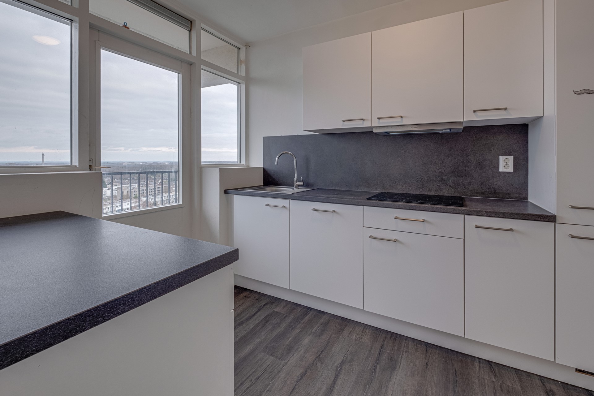 De gesloten keuken is recentelijk (2023) vernieuwd met een nieuw keukenblok, voorzien van de benodigde inbouwapparatuur. Ook vanuit de keuken is er toegang tot het balkon en kun je genieten van het geweldige uitzicht. Naast de keuken is er een aansluiting voor de wasmachine.