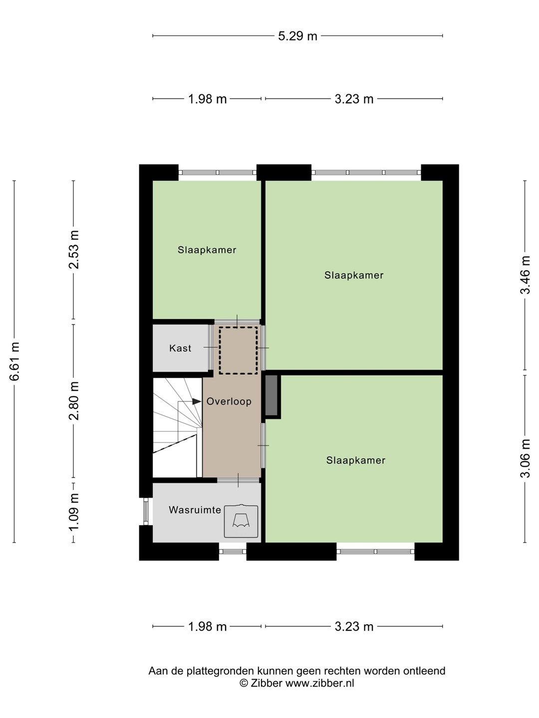 De andere twee slaapkamers zijn respectievelijk 10 m² en 5 m².