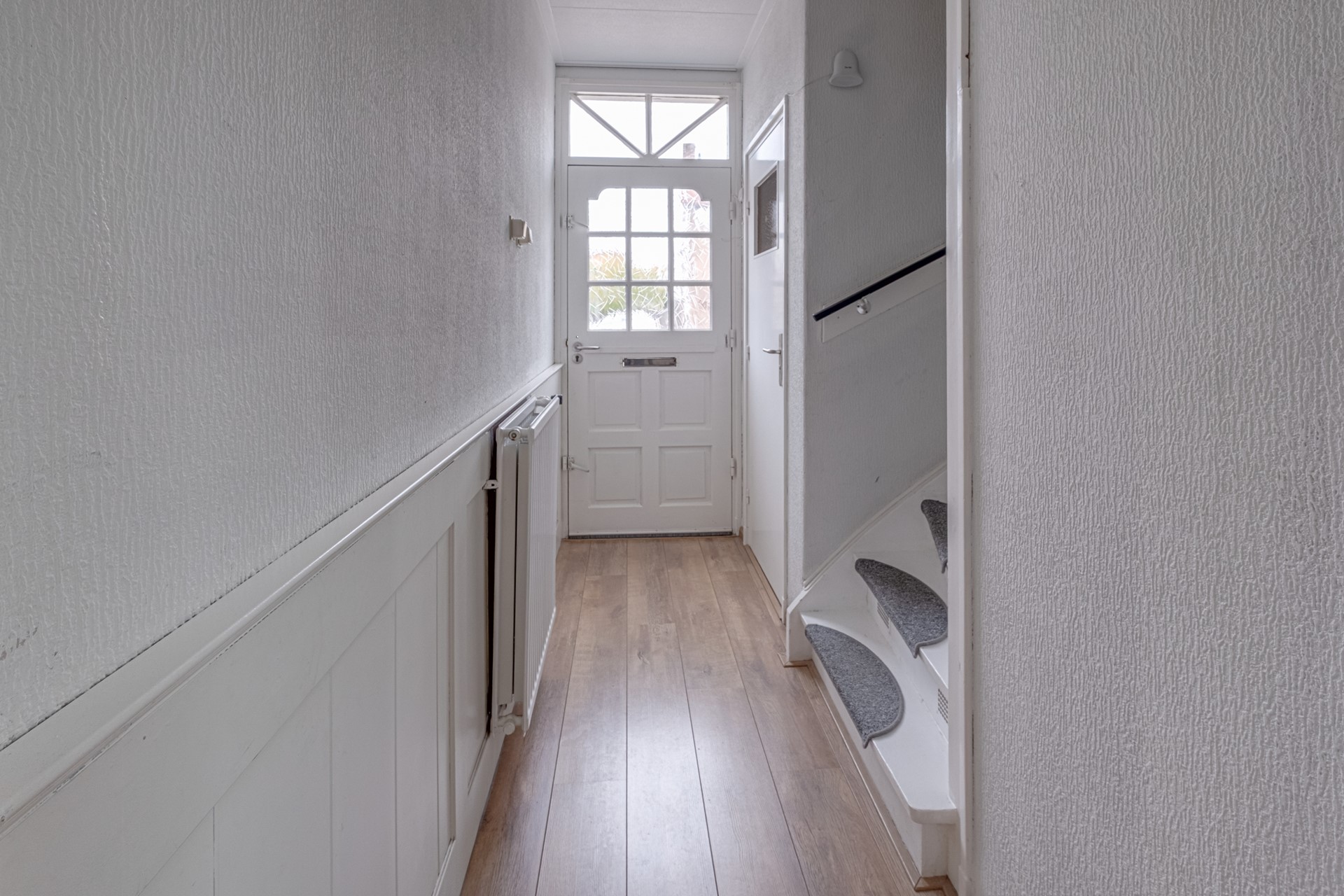 In de hal achter de voordeur vind je het toilet en trap naar de verdieping. Daarna kom je in de ruime woonkamer die is voorzien van een laminaatvloer en grote ramen aan de voor- en zijkant, waardoor veel licht de ruimte binnenkomt. In de woonkamer bevindt zich ook de toegangsdeur tot de kelder.