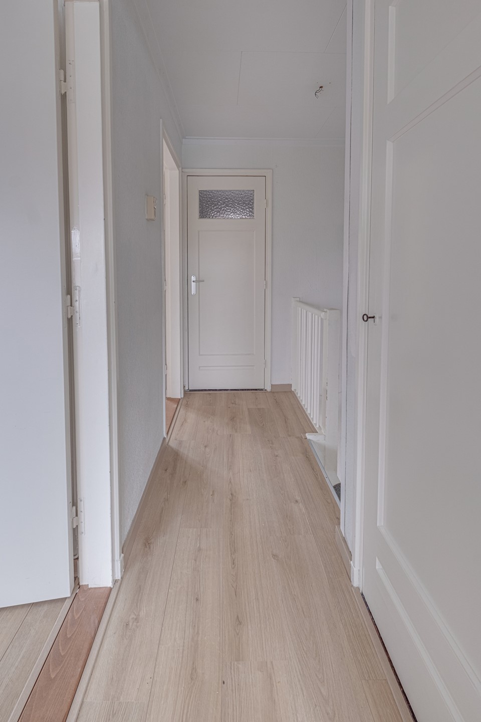 Op de verdieping is de hele vloer voorzien van een laminaatvloer.