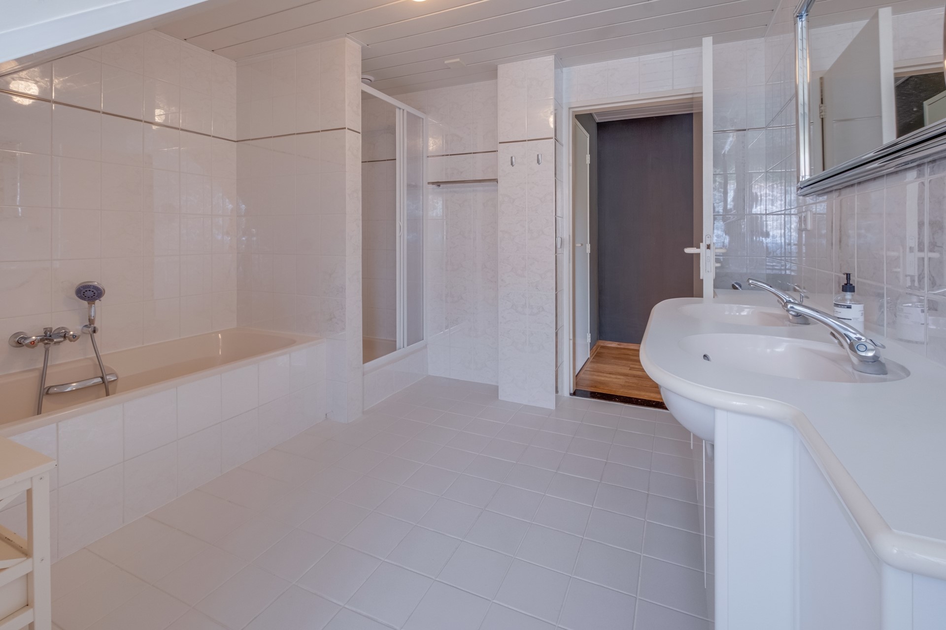 In de tweede badkamer vind je een inloopdouche en een wastafel en er is nog een apart toilet op deze verdieping.